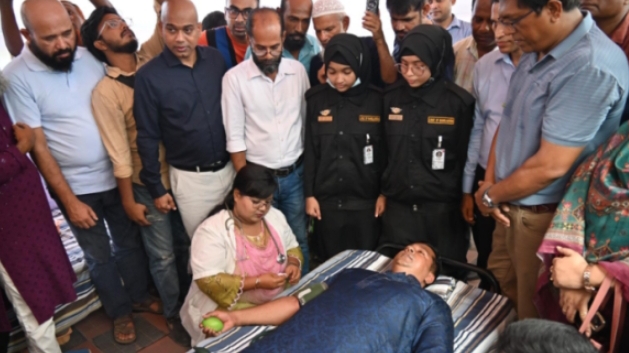 স্বেচ্ছায় রক্ত দিলেন ডিসি জাহিদুল ইসলাম।