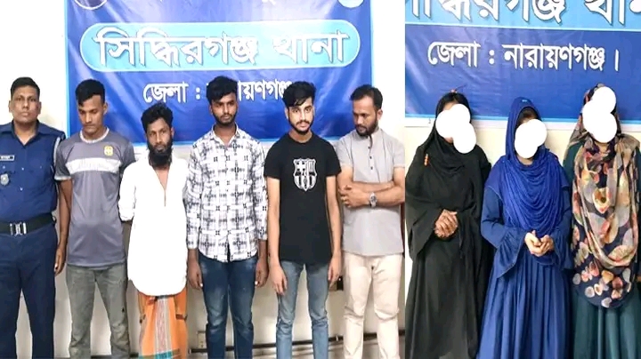 সিদ্ধিরগঞ্জে আবাসিক হোটেলে পুলিশের অভিযানে ৮ জন আটক।