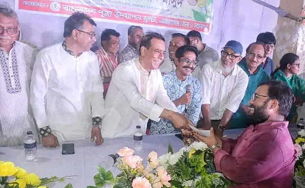 শারদীয় দূর্গোৎসব উপলক্ষ্যে শিল্পপতি মাসুদুজ্জামানে’র শুভেচ্ছা বিনিময় ও উপহার হিসেবে অর্থদান।