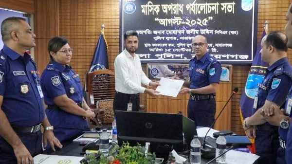 স্টাফ রিপোর্টারঃ নারায়ণগঞ্জ জেলা পুলিশের মাসিক কল্যাণ সভা ও অপরাধ পর্যালোচনা সভা অনুষ্ঠিত হয়েছে। সোমবার (১৫ সেপ্টেম্বর) সকালে পুলিশ লাইনস্ ড্রিল শেডে নারায়ণগঞ্জ জেলা পুলিশের মাসিক কল্যাণ সভা অনুষ্ঠিত হয়েছে।