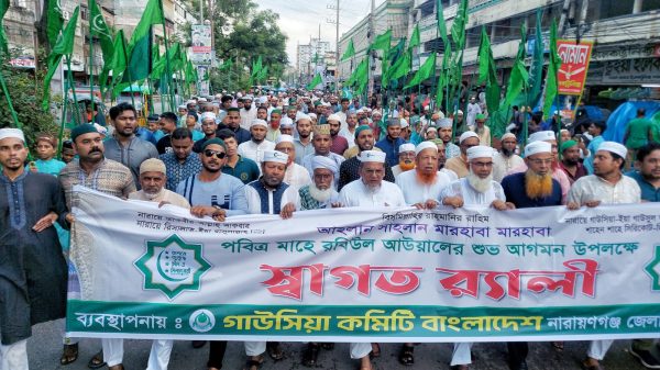 স্টাফ রিপোর্টার: পবিত্র মাহে রবিউল আউয়ালের শুভ আগমন উপলক্ষে ঈদে মিলাদুন্নবী (সাল্লাল্লাহু আলাইহি ওয়াসাল্লাম) কে স্বাগত জানিয়ে নগরীতে জাঁকজমকপূর্ণ র্যালী অনুষ্ঠিত হয়েছে। শুক্রবার (২২ আগষ্ট) বাদ আসর গাউছিয়া কমিটি বাংলাদেশ